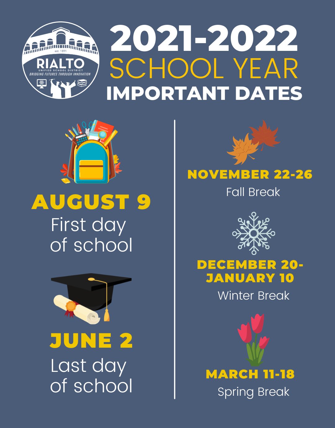 Rialto Unified School District Pa Twitter With One School Year Complete The Next School Year Is Around The Corner We Ll See Everyone Back In School On August 9 For The 2021 2022 School